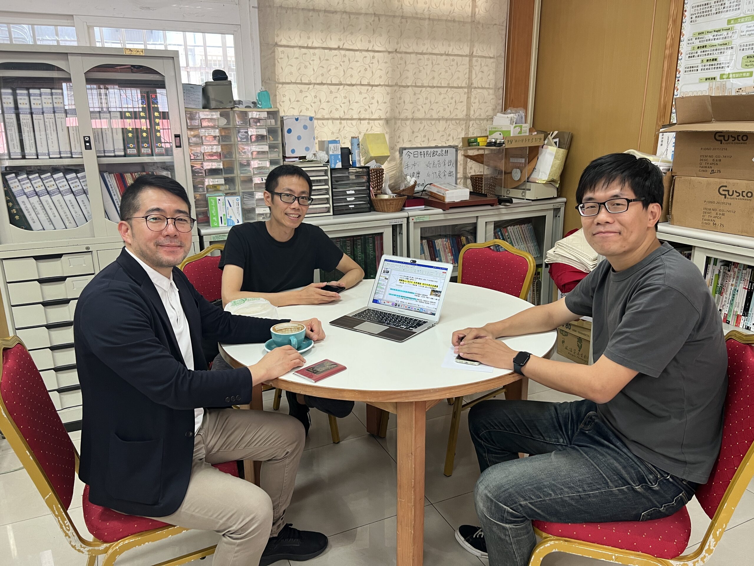 市邨高校・松野教諭(左)鳳山商工高校・許教諭(中央)同・林教諭(右) -