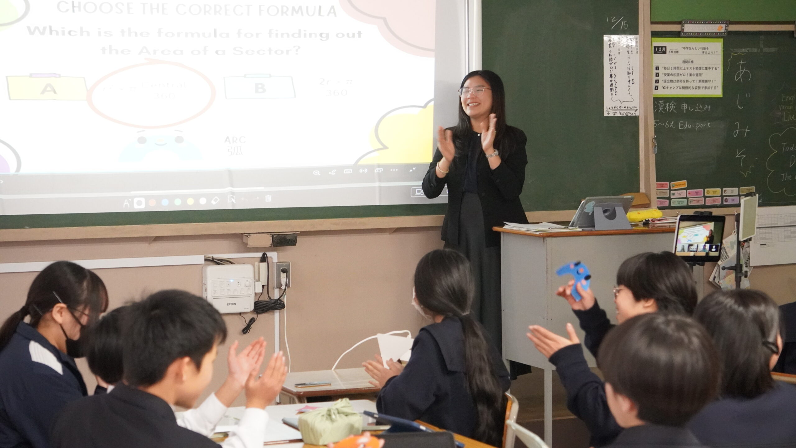 日本側の発表は教科書内容を基盤とした構成であったが、ICTを活用した個別最適化学習が学校全体でシステムとして機能している点や、担任による学習進行支援の仕組みが高い評価を受けた。
