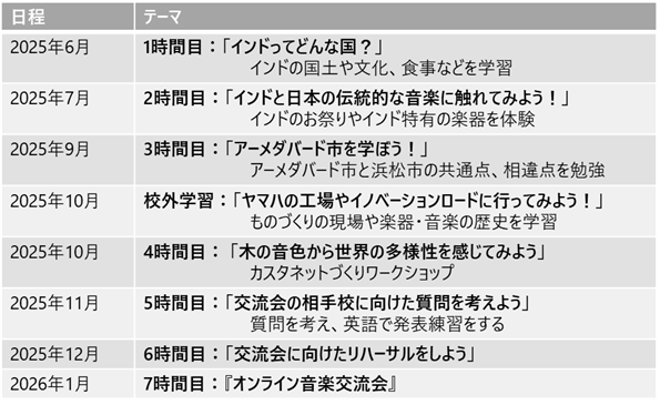 令和7年3月にヤマハが浜松市教育委員会に市内の小学校とアーメダバード市内の小学校との音楽交流会の開催を提案したところ、教育委員会は城北小学校を対象校に推薦しました。これまでの同校の国際交流等への積極的な取組を評価したものです。一方のDCISはインドにおけるスクールプロジェクト展開校で、令和3年から課外活動においてリコーダーを使ったヤマハの音楽教育プログラムが導入されています。